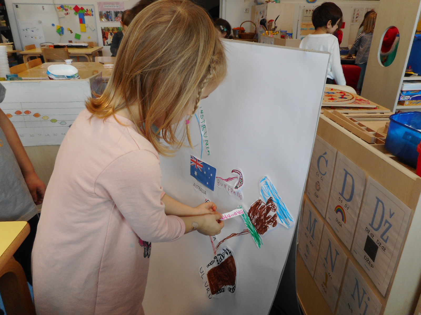 Kako su djeca na globusu utvrdila da nam je Australija najdalje, to je bila prva zemlja sa kojom smo se upoznali. Roditelji su donosili raznovrsne predmete iz navedene zemlje te su djeca imala prilike upoznati se sa njima iz neposrednog iskustva. Odgojitelji su pripremili hamere na kojima su djeca pomoću mentalnih mapa prikazivala sve ono što su saznala istraživanjima i što im se učinilo zanimljivim.